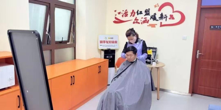 义诊区,来自明岐中医院的专业医护人员考虑到骑手长期奔波、饮食不规律、腰部颈部易劳损的职业特性,重点为他们提供血压血糖检测、肩颈腰椎检查等服务。医护人员一边仔细检查,一边耐心叮嘱骑手们:“平时配送再忙,也要抽空活动活动身体,按时吃饭,注意劳逸结合。”另一边的义剪区,发师志愿者手持工具,以娴熟的技艺为骑手们打造清爽利落的发型,焕新骑手面貌,“骑车跑单的时候头发长了特别不方便,这次能免费剪头发,感觉整个人都精神多了!”